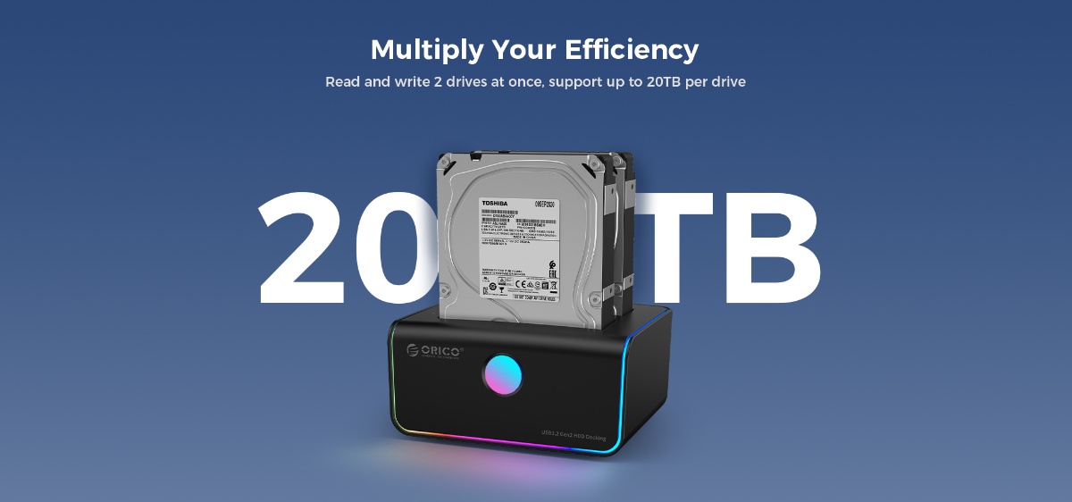 This tool-less clone docking station can support two 2.5-inch or 3.5-inch SATA drives simultaneously, up to 18TB per drive. It copies all the data from one hard disk to the other hard disk without any host or other devices required even offline. With 10Gbps USB 3.2 Gen 2 USB C to USB C cable, you will enjoy fast and convenient transmission.