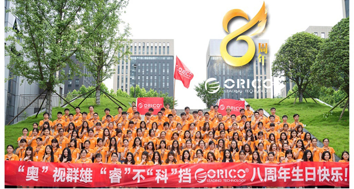 ORICO has established 10 factories in over 3000 days with the help of more than 1000 employees including 140+ R & D engineers. ORICO has developed thousands of products belonging to USB storage, USB HUB, USB power strip, charger, digital accessory, high-end peripherals and more product lines. From online agents to real stores in 22 provinces, from China to America, Australia, Germany and other countries, ORICO's products are all over the world. ORICO owes its success to all the staffs. 8 years devotion leads to a promising future.