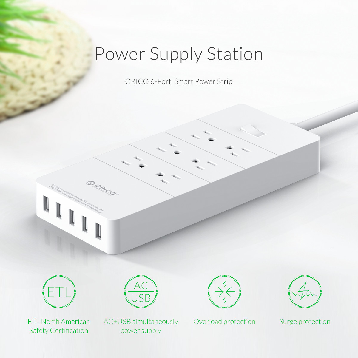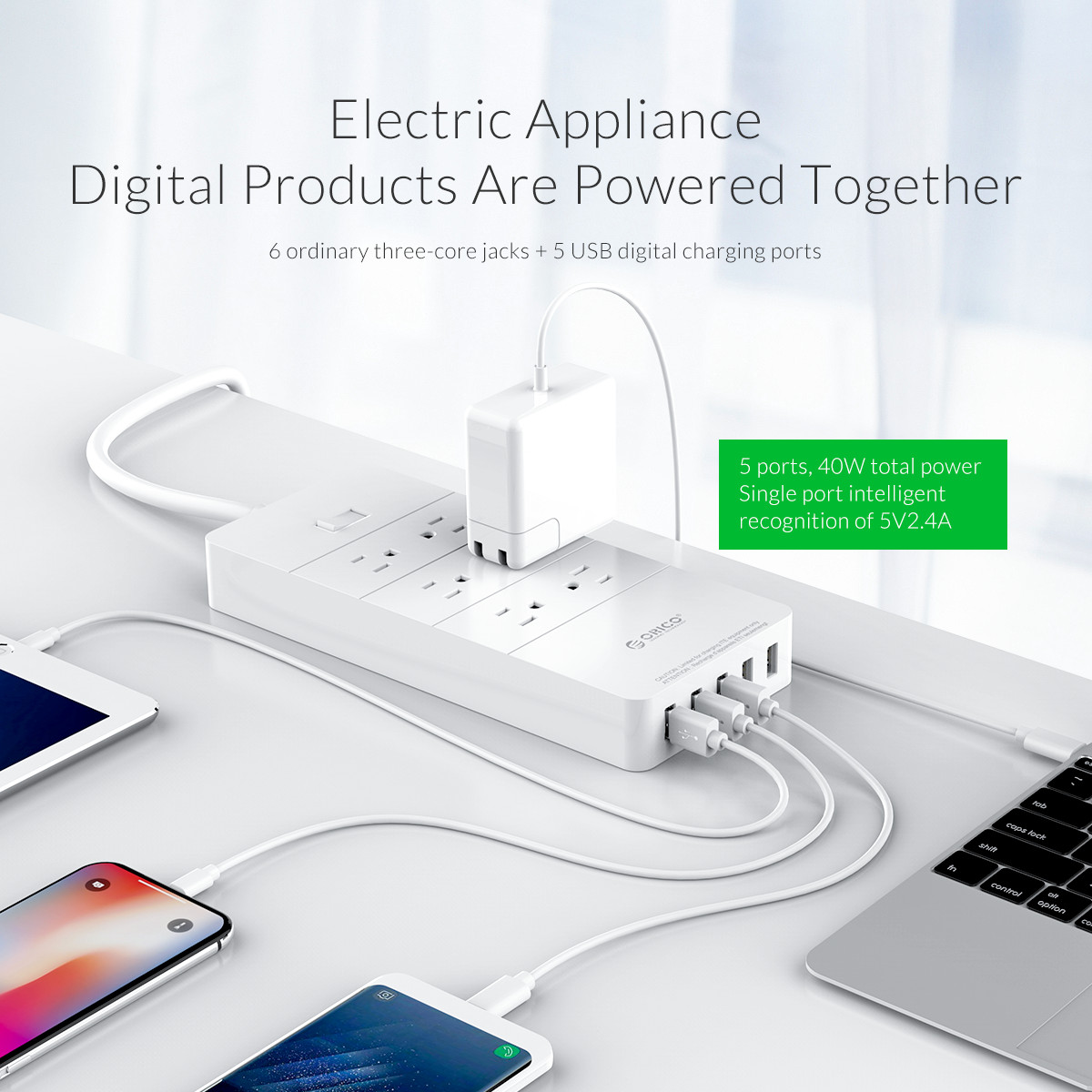 6 AC Outlet Surge Protector with 5 USB Charging Port