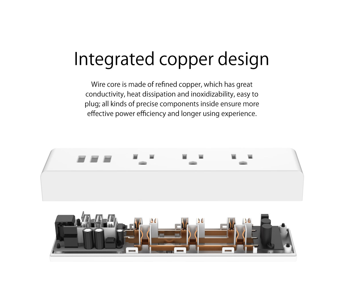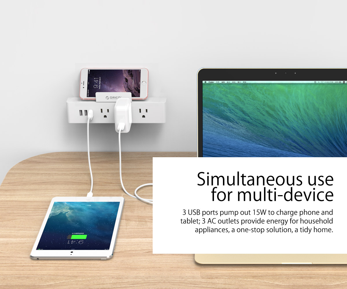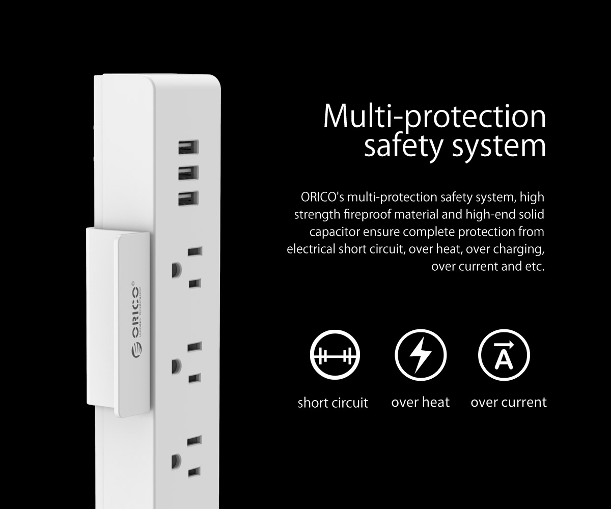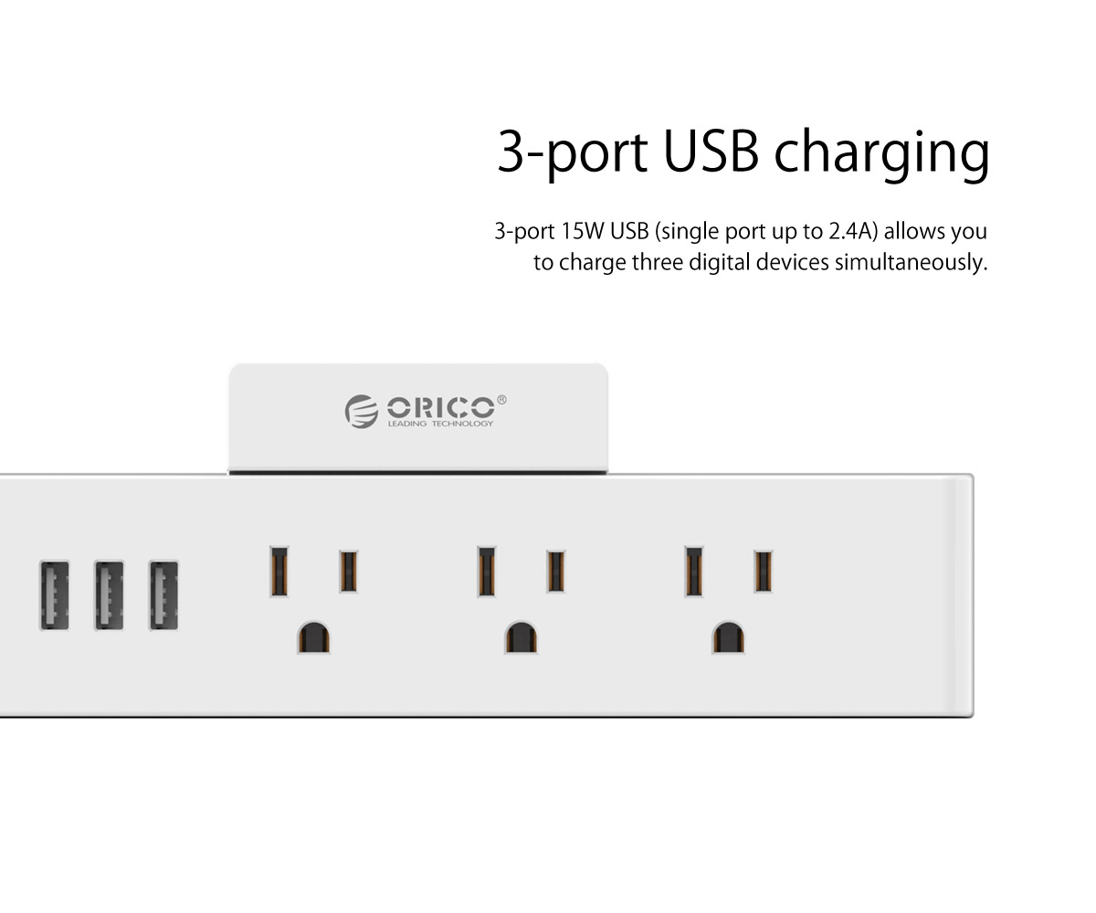 3 AC Outlet Power Strip with 3 USB charging Port