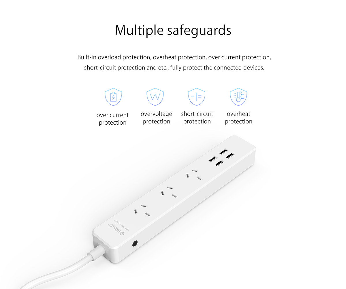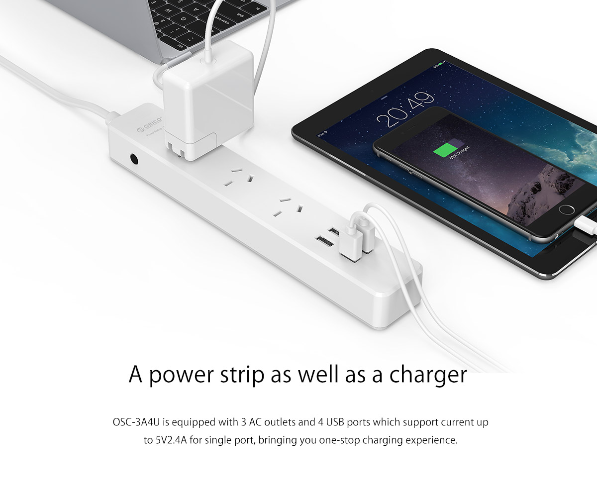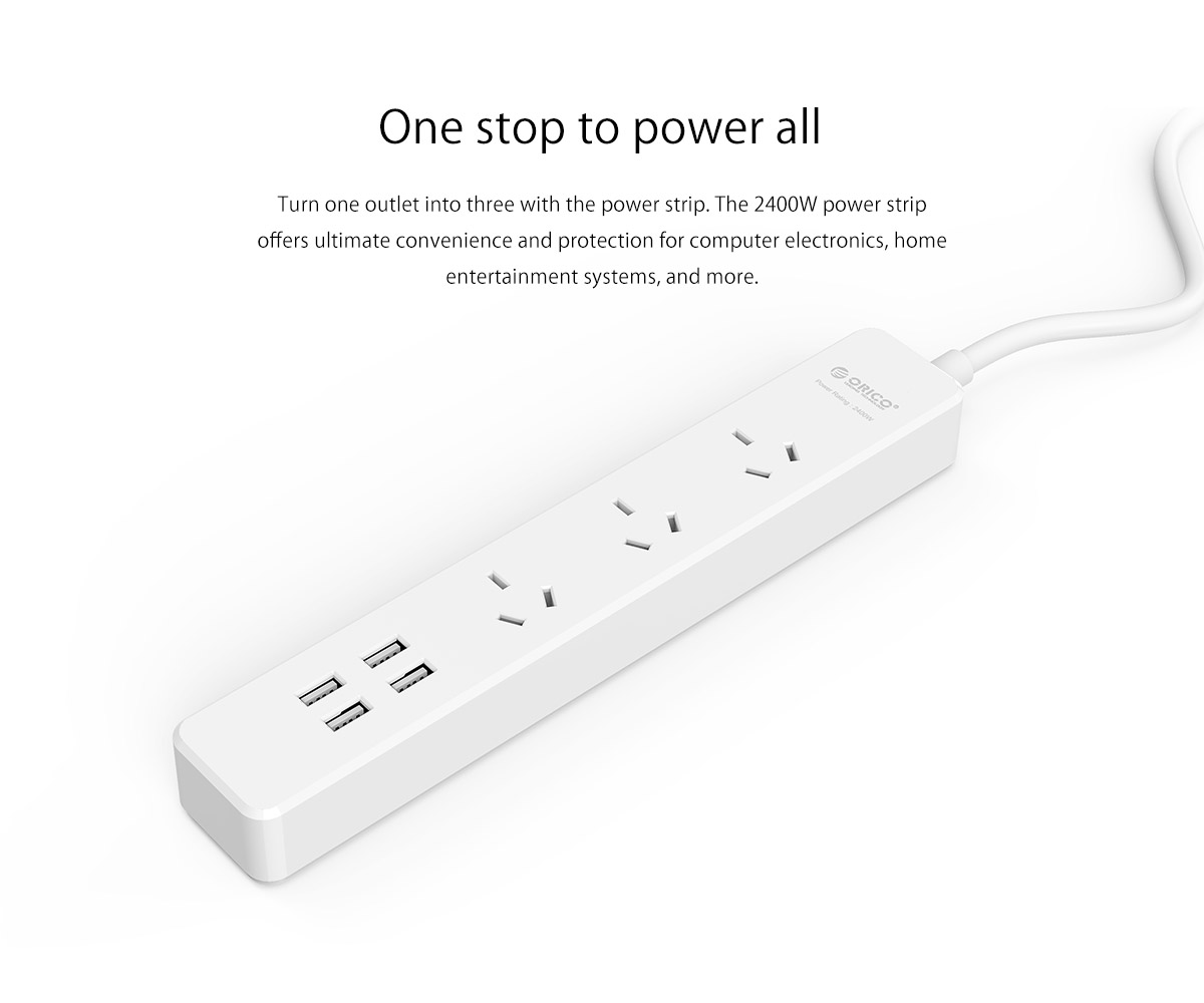 3 AC Outlet Power Strip with 4 USB Charging Port