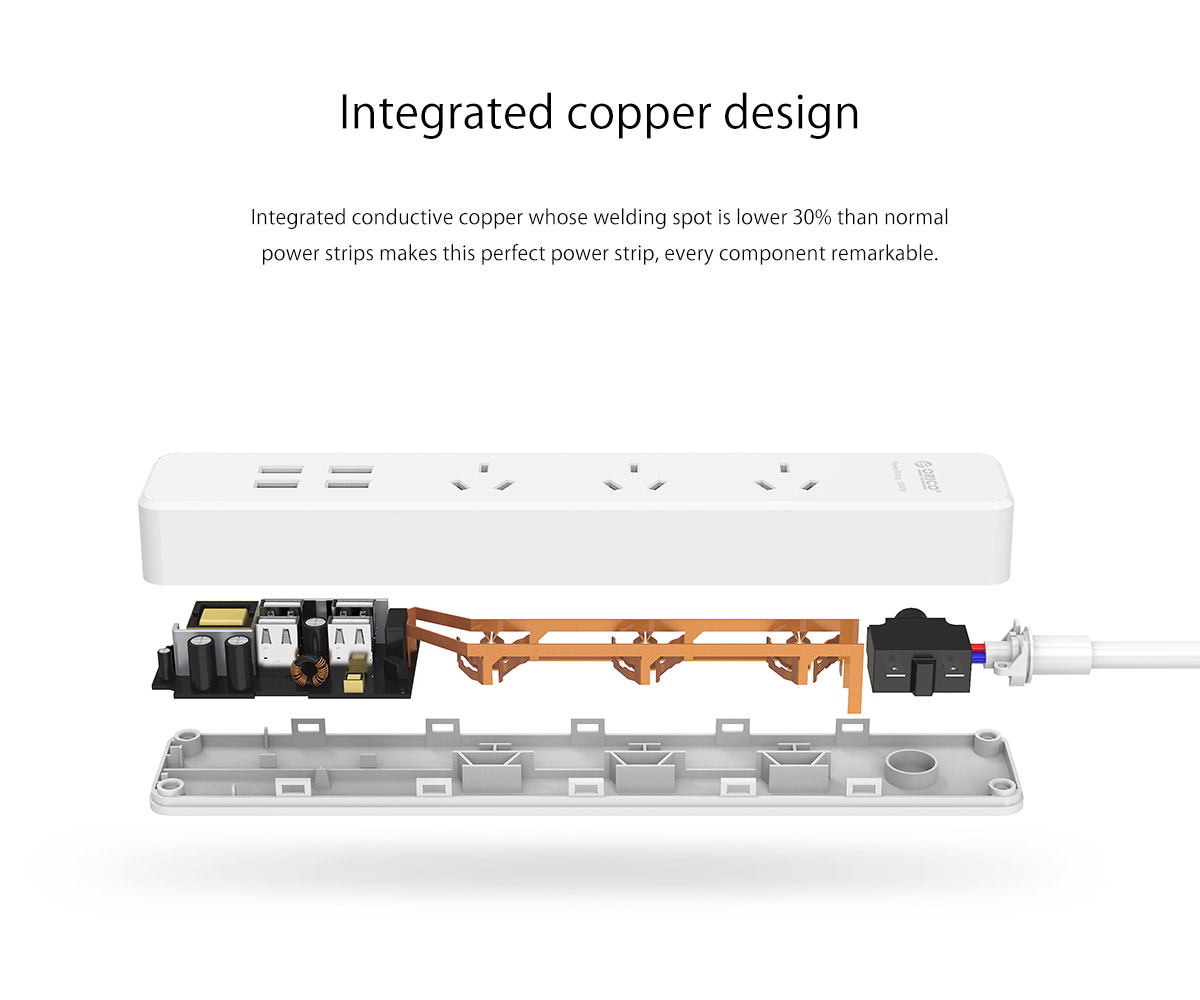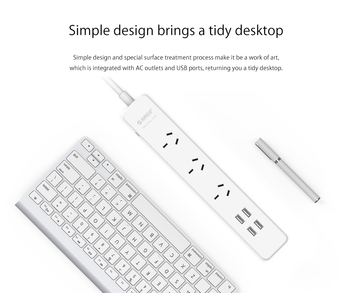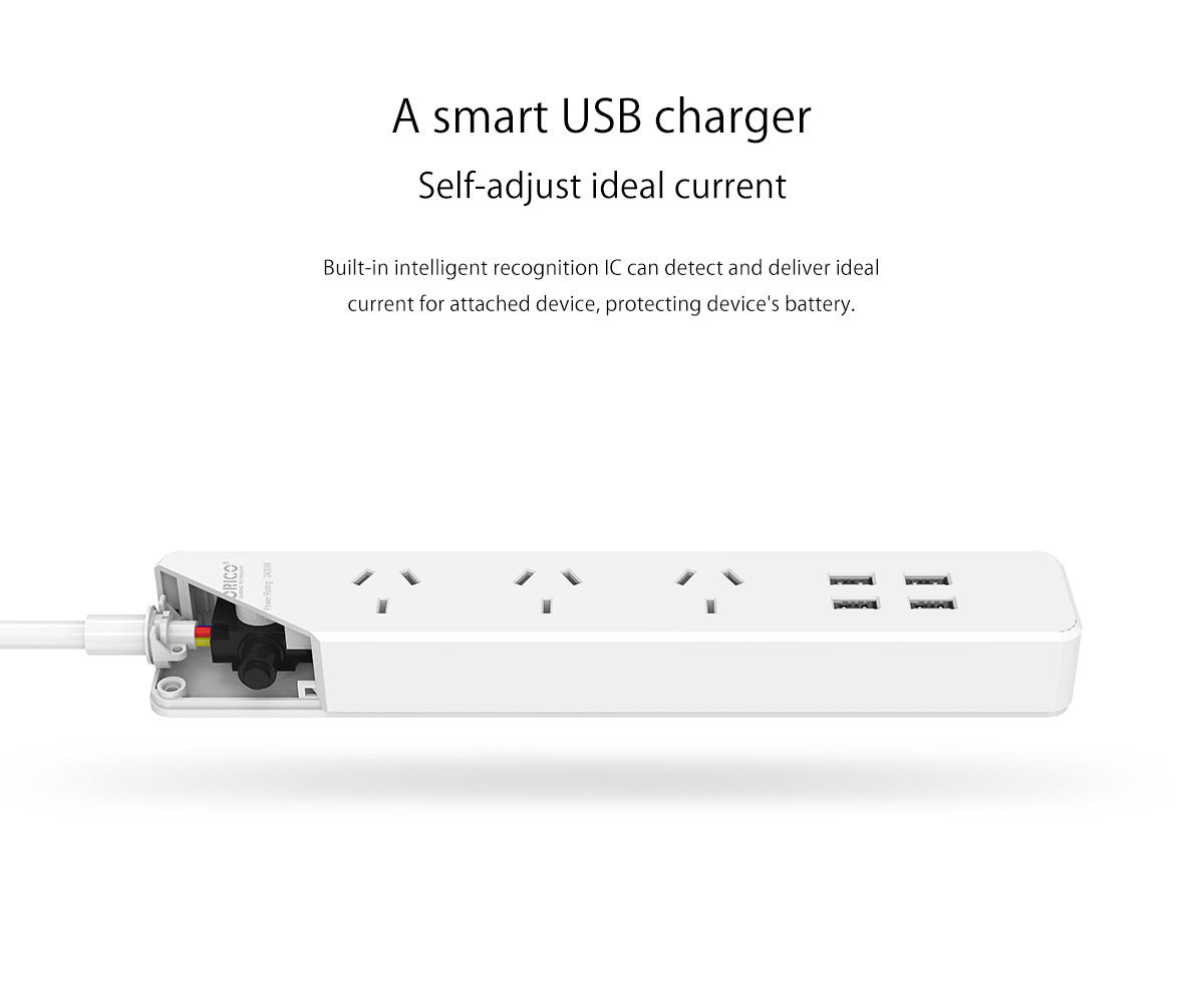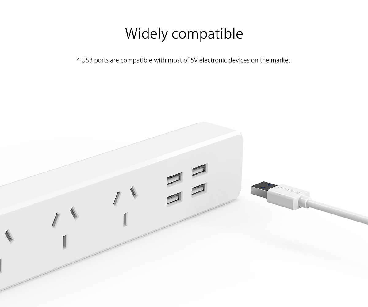 3 AC Outlet Power Strip with 4 USB Charging Port
