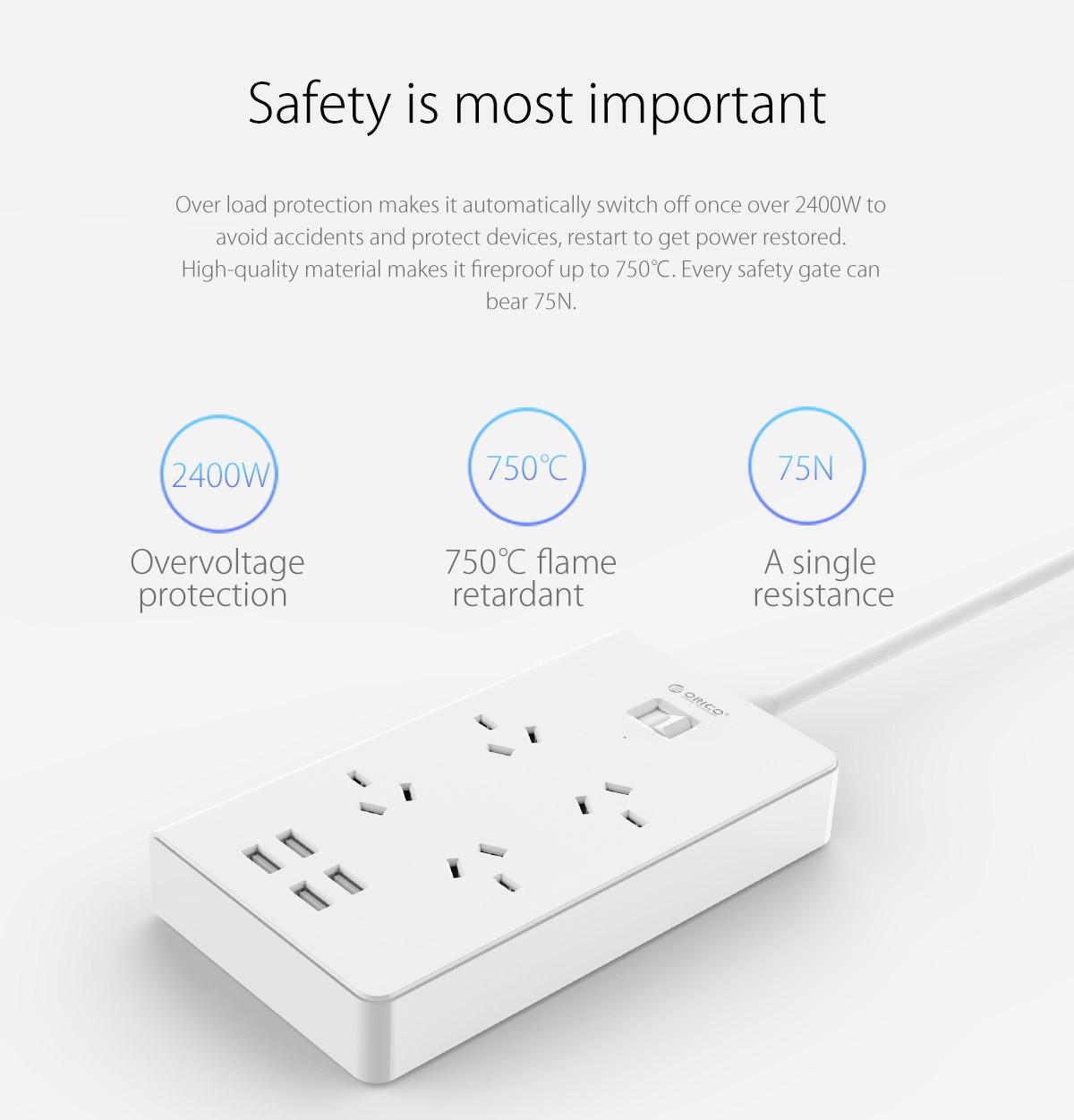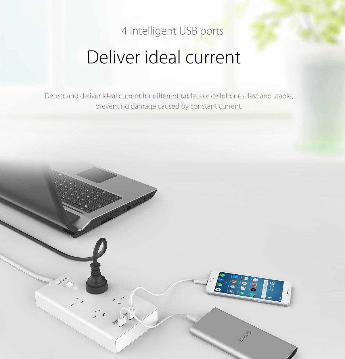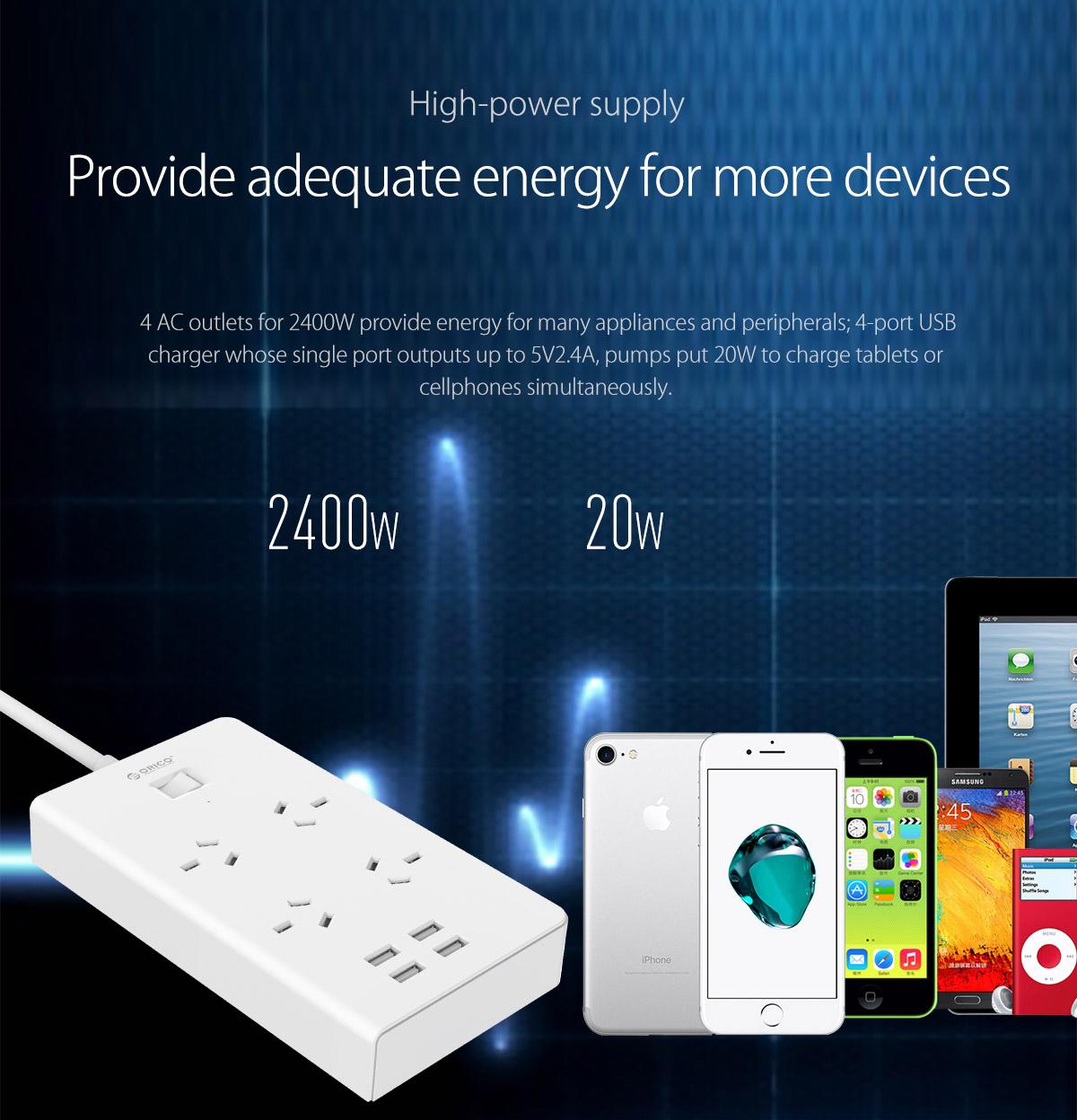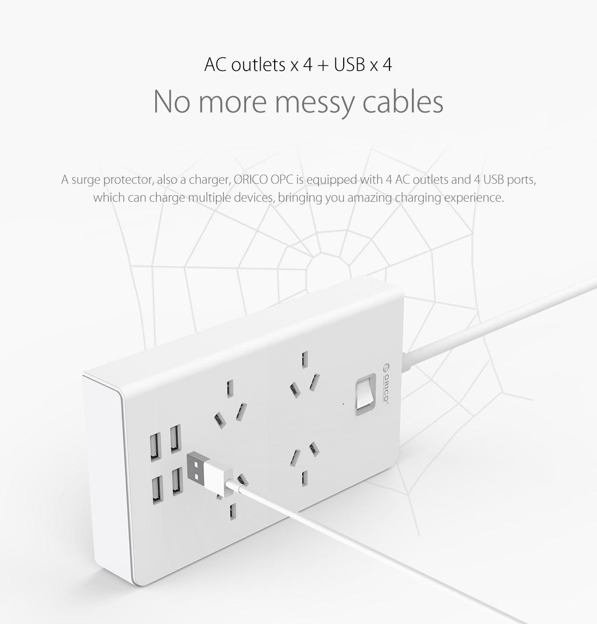 4 AC Outlet Power Strip with 4 USB Charging Port