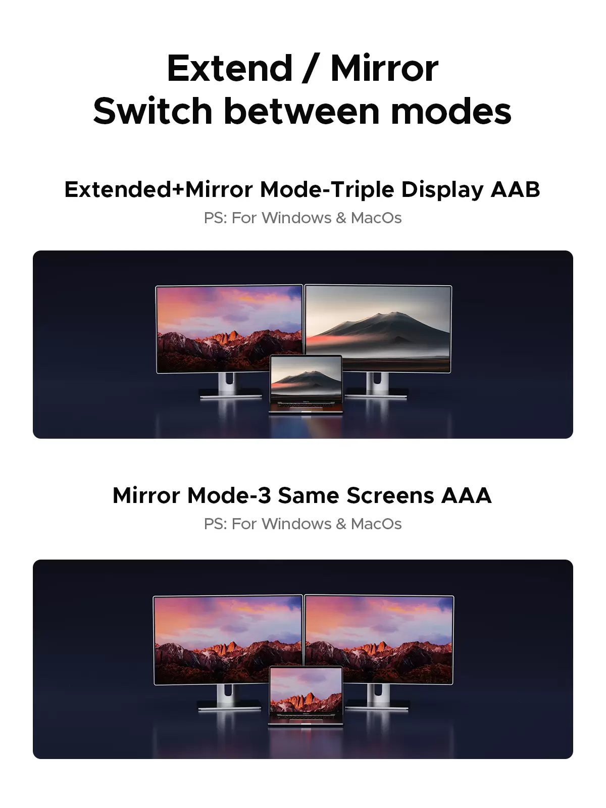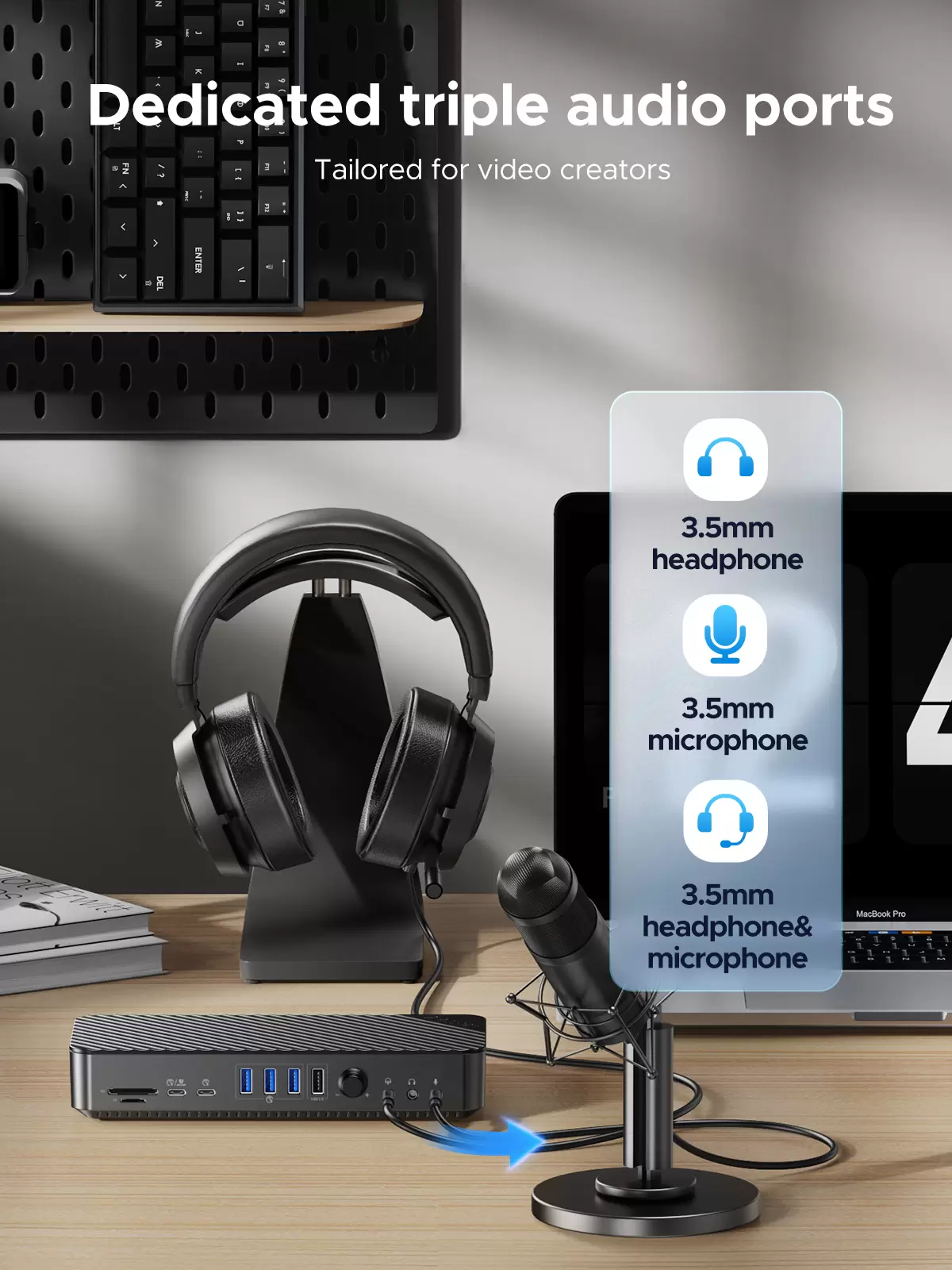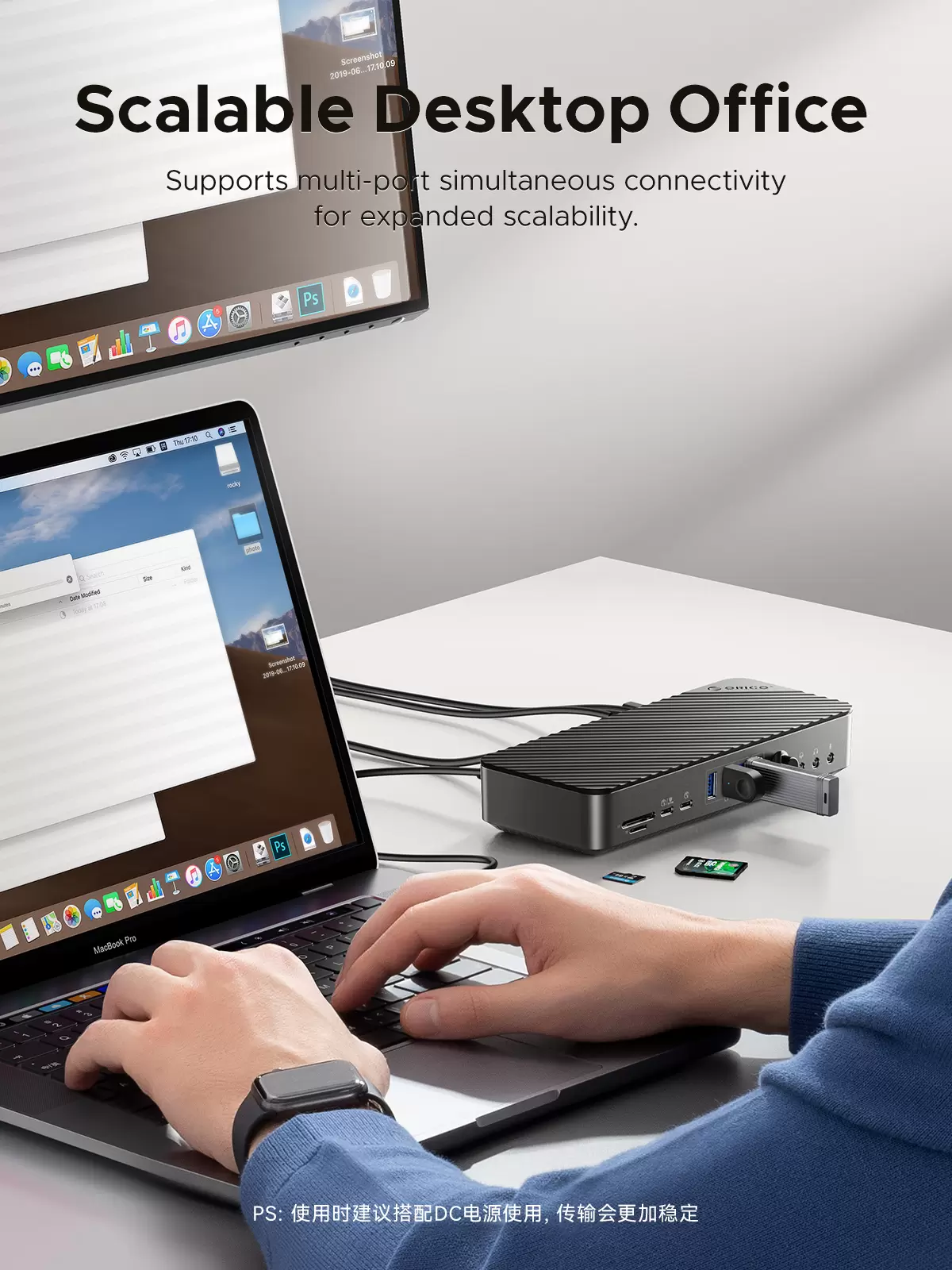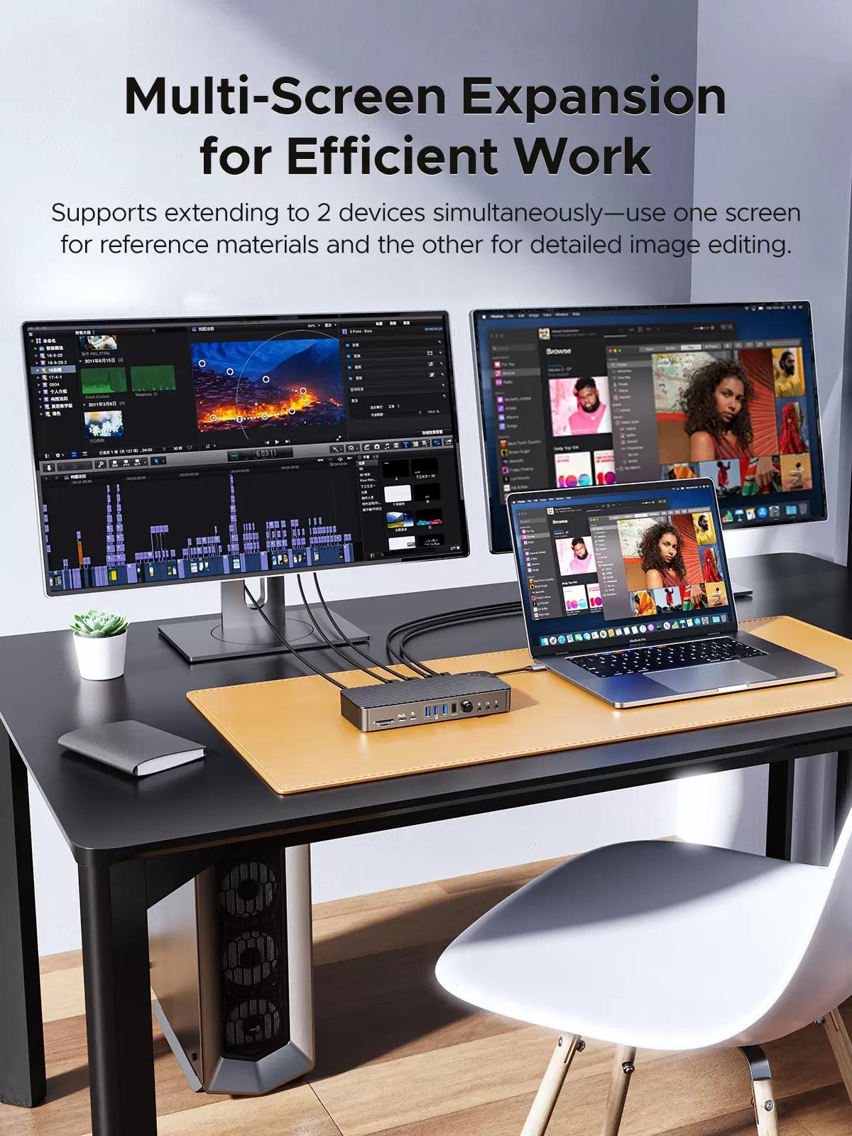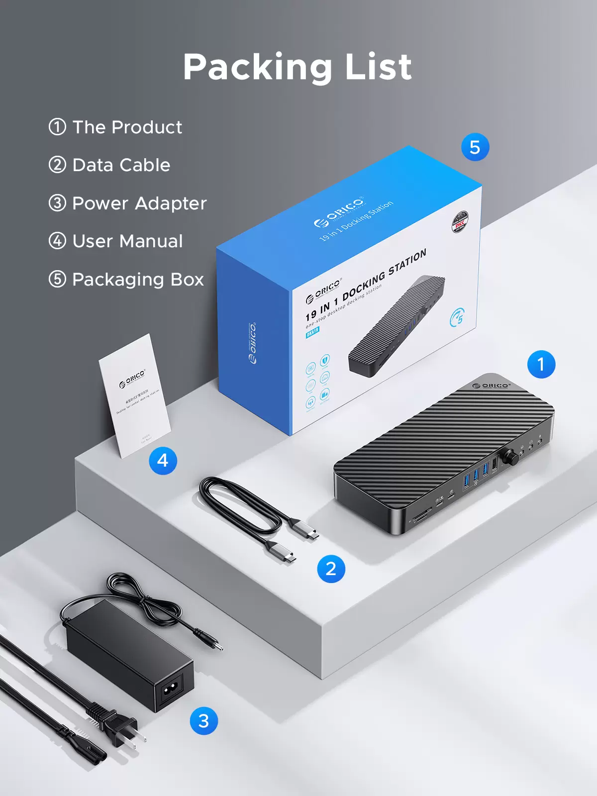 USB-C PD60W*1, USB-C 3.0 PD18W*1, USB-C 3.0 *1, USB-A 2.0*4, USB-A 3.0*3, RJ45 Interface*1, USB 2.0 SD/TF*2 (Not Simultaneous), 3.5mm Headset Jack*1, 3.5mm Mic Jack*1, 3.5mm Mic/Headset Jack*1, HDMI 4K@30Hz*1, VGA 1920x1080@60Hz*1, Volume Adjustment Knob*1