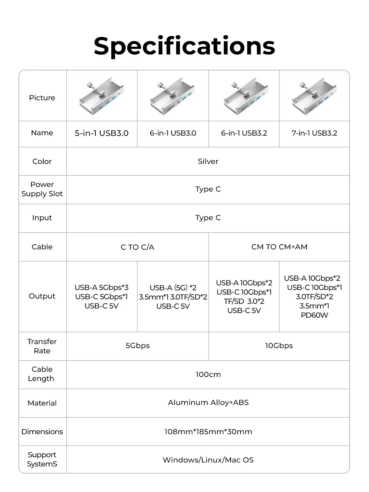 6-in-1 Clamp-Mounted Hub